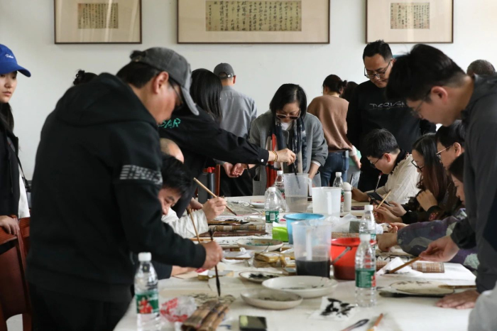 笔会结束,大家在东坡海棠树合影。这场融合书画创作、学术研讨与实景体验的文化雅集,不仅是对东坡文化的深情致敬,更展现出宜兴作为书画之乡的艺术传承活力。水墨与海棠共舞,历史与现实交汇,千年文脉在新时代的春风里,正书写着动人的续章。