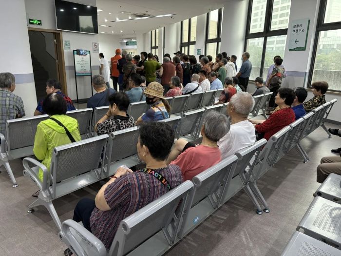 7月30日早晨6点30分,社区卫生服务中心一楼的等候大厅里,就已经聚集了许多前来体检的老年人。在社区工作人员的指引下,体检活动有条不紊地进行着。此次体检活动主要面向辖区65周岁及以上的老年人,为他们建立健康档案并且进行健康体检。