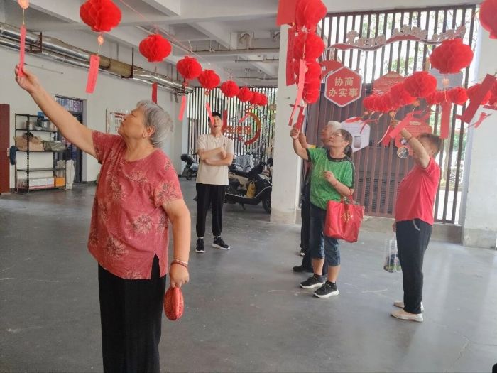 社区工作人员首先现场演示香囊制作技艺,从布料选择、药材配比到包制技巧,细致讲解每一个步骤。居民们认真聆听,跃跃欲试。手指翻飞间,一个个精巧别致的香囊渐渐成型。