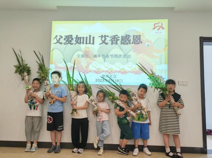 6月18日,谢桥社区在南郊花园活动室开展了“父爱如山·艾香感恩”为主题的父亲节、端午节双节同庆活动。