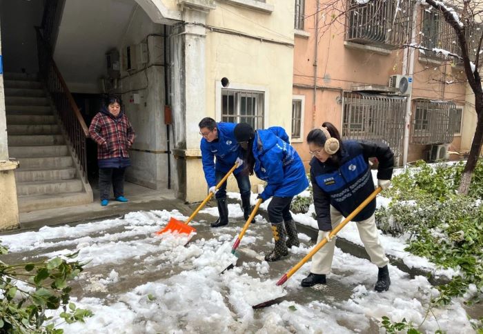 唐公社区:铲雪除冰保畅通 服务居民暖人心