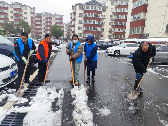 岳堤社区开展“党员群众齐上阵 铲雪除冰保平安”主题党日活动