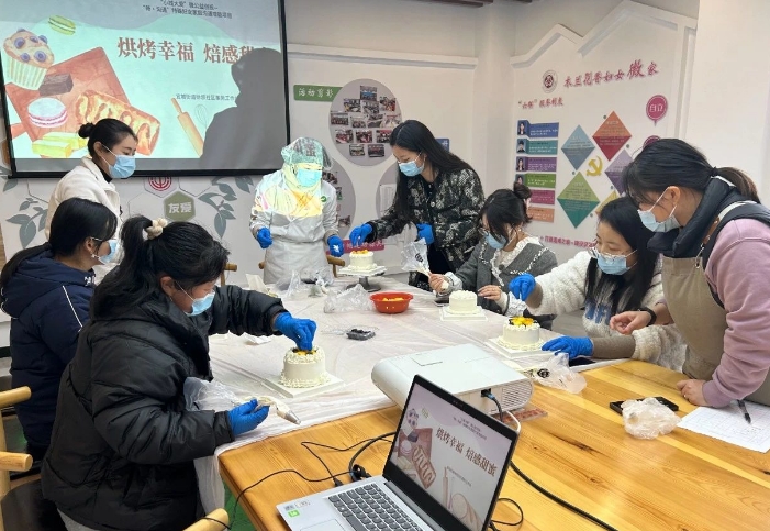 为丰富辖区妇女的业余生活,营造温馨、和谐的社区氛围,充分发挥社区为民服务的宗旨,近日,宜城街道徐坝社区在社区二楼活动室,开展了“烘烤幸福  焙感甜蜜”DIY蛋糕制作活动,让大家体验手工烘焙带来的乐趣,为工作和生活加点“甜”。