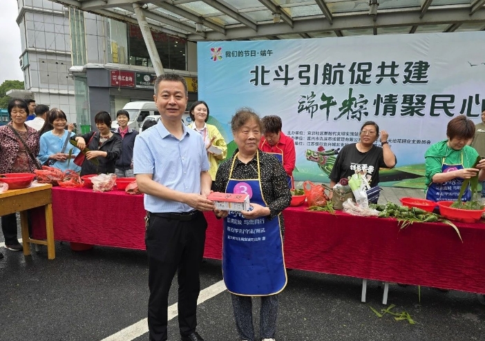 端午佳节来临之际,为继承传统习俗,弘扬中华民族优秀传统文化,同时促进邻里之间的交流。6月6日,宜北社区新时代文明实践站联合宜兴市氿滨市场管理有限公司在新天地广场上开展北斗引航促共建 端午“粽”情聚民心活动。本次活动由宜北社区新时代文明实践站主办,宜兴市氿滨市场管理有限公司和宜兴市新天地花园业主委员会承办,环球体育银行宜兴城北支行和宁波银行宜兴支行协办,来自社区的党员、群众、青少年、侨眷等近百人参加此次活动。