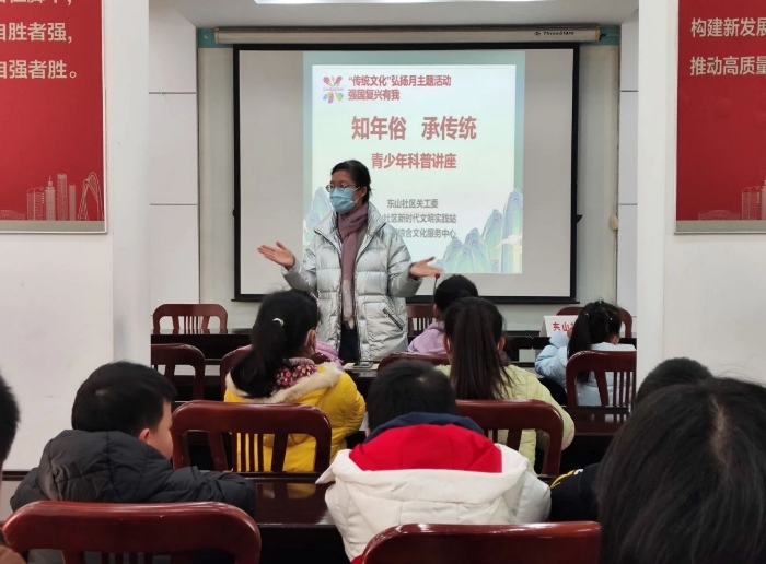 东山社区开展“知年俗 承传统”青少年科普讲座