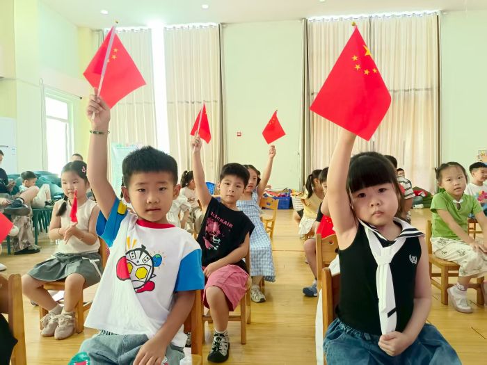 9月3日,南通市崇川区天生港镇街道龙湖佳苑社区联合辖区幼儿园,组织小朋友们观看了纪念中国人民抗日战争暨世界反法西斯战争胜利 80 周年阅兵仪式,让孩子们在心中种下了爱国的种子。(吴淑)