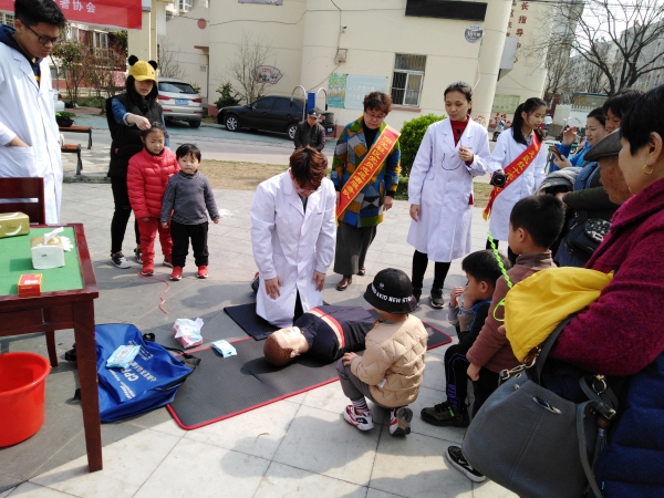 3月24日上午,徐州市云龙区骆驼山街道阳光社区党委联合徐州医学院“清风”志愿者与社区党员志愿者一起,在社区广场开展志愿服务活动,向社区居民宣传急救保健知识。