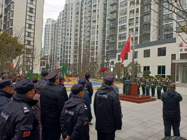 2020年元旦,新年伊始。淮安市淮安区淮城街道恩来社区在党群服务中心前举行庄严的升国旗仪式,共同见证五星红旗冉冉升起的庄严时刻。淮阴师院、曙光医院、大润发超市、胜安口腔医院、万豪物业等与社区党建联盟单位代表和社区党员干部、志愿者、部分居民300多人参加升旗仪式。