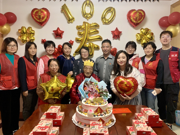 迈皋桥街道万寿村社区党委为栖霞区首位男性百岁老人庆生