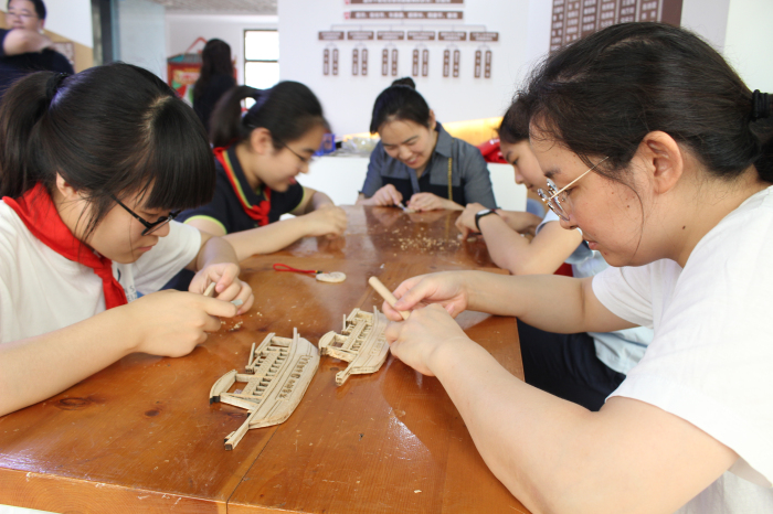 近日,南通市崇川区朝晖社区关工委、妇联、网格办联合朱宇雕刻艺术馆联合开展“不忘初心,永跟党走”红船雕刻活动,非遗文化传承人朱宇和小朋友能一起体验雕刻乐趣,在木雕中感受工匠精神。 活动现场,在非遗工匠老师的指导下,孩子们兴致勃勃地开始学习制作红船,从原材料的切割、转孔、打磨、上油等一系列工序,一个个精致的红船就制作成型了,孩子们亲身体会了红木雕刻艺术的精妙之处,也感受到匠人的不易和坚守。(付廷锋)