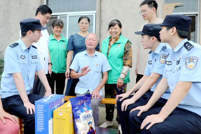 8月4日,宜兴杨巷社区民警联合“久久春晖”工作站的同志看望慰问该镇芝果村86岁的老党员、退伍老兵芮彭年。工作人员详细询问老兵的身体状况、经济收入及生活中有无遇到的困难等情况,鼓励他继续发扬军人的优良传统,退役不褪志,退伍不褪色,把生活过得越来越红火。在场的警民们表示一定会以老党员为榜样,不忘初心使命,继承和弘扬党的红色基因和优良作风,让党的事业薪火相传,营造“民拥军,军民鱼水一家亲”的良好社会氛围。(龚建平)