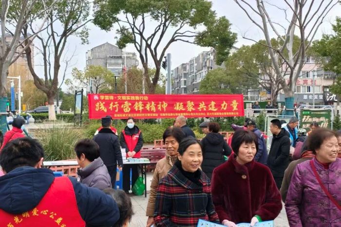 三月春风处处暖,雷锋精神代代传。为大力弘扬“奉献、友爱、互助、进步”的志愿精神,推动新时代文明实践活动走深走实,3月4日上午,文峰社区新时代文明实践站联合无锡市住房公积金管理中心宜兴市分中心、宜兴市城旅物业管理有限公司、爱心一家义工站、王俊推拿、宁波银行宜兴支行等共建单位,在谢桥口袋公园共同举办“学雷锋·文明实践我行动:践行雷锋精神 凝聚共建力量”主题活动。