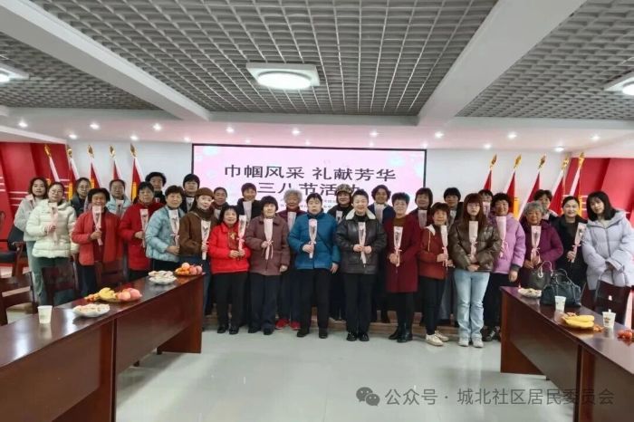 在“三八”国际劳动妇女节来临之际,为致敬巾帼力量、传递温暖关怀,城北社区开展“巾帼风采 礼献芳华”主题庆祝活动,向全体女性居民送上节日的美好祝福与诚挚问候。