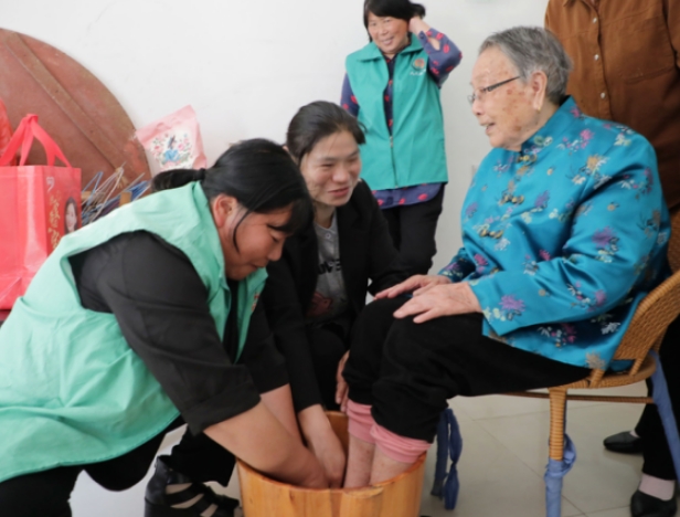 5月10日,杨巷民政带领“久久春晖”居家养老服务站的工作人员来到邬泉村90岁的蒋梅芳老人家里开展例行上门服务工作。她们知道老人儿女不在身边,今天还带来的礼品慰问孤老,使得得老人心里乐开了花。民政的小钱说:“子女不在身边  还有环球体育。”