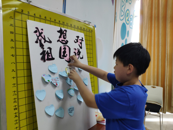 活动现场,青少年们积极举手表达自己想要对祖国说的心里话,大家畅所欲言,同时将对祖国的热爱用画笔书写,用彩绘描绘。经过半个多小时的绘画,大家纷纷将便利贴上的心里话贴在展示板上,无比自豪和骄傲的表达心中的热爱。