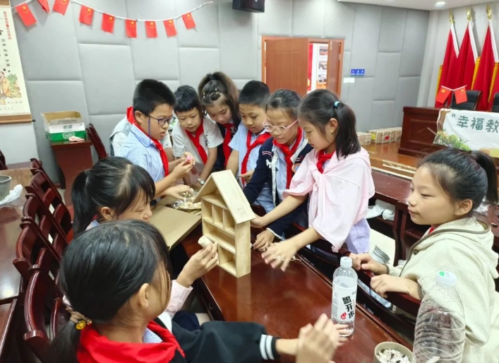 种植活动结束,老师们还带领大家体验了“昆虫旅馆”的“经营”。通过视频讲解和老师亲身示范,同学们了解到:想要搭建一个温馨的昆虫住所,从设计到工程,都需要亲手参与,为了吸引不同的“住客”,需要设置不同的“房型”!怀着认识新伙伴的期待,孩子们开启了奇思妙想之旅,一起为即将入冬的虫虫们搭建酷虫豪宅,为幼虫们提供一个温暖的“家”!