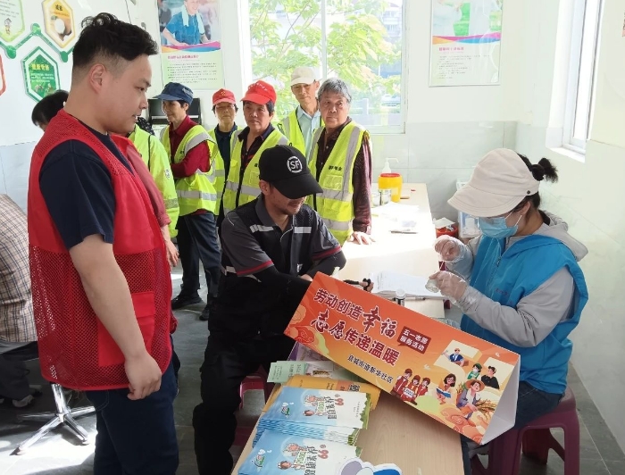新华社区依托社区健康小屋,为快递员、环卫工人等户外劳动者提供了义诊、健康咨询、量血压、测血糖等便民服务,为辖区居民尤其是辖区户外劳动者提供贴心帮助。同时,志愿者还为劳动者们宣传了交通安全知识、提升大家的出行安全意识。
