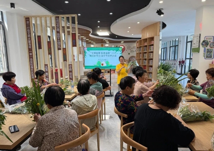 艾草青青沁人心脾,菖蒲郁郁古韵悠长。为弘扬中华民族优秀传统文化,让辖区居民感受端午佳节浓情氛围,5月26日,宜城街道徐坝社区在社区一楼开展了“艾草摇翠 粽香漫巷”端午艾草门挂手作沙龙活动。