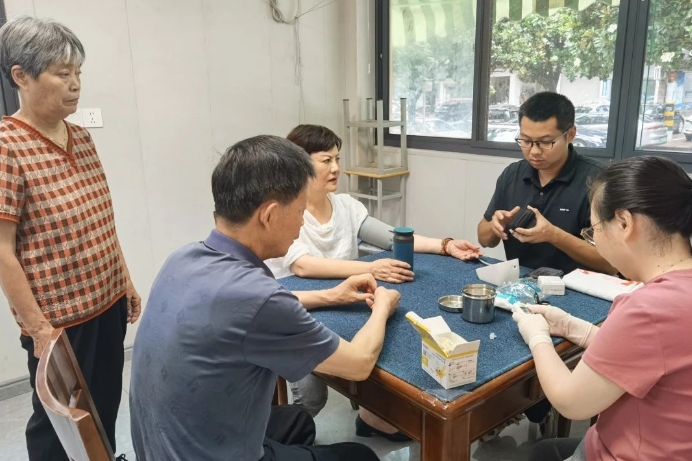 来自市疾控中心的医护志愿者,熟练地为居民测量血压、血糖,耐心解答健康疑问。针对老年人常见的高血压、糖尿病等慢性病,医生们提供全面的用药指导。居民表示:“以前去医院挂号排队太麻烦,现在下楼就能免费检查,真是太贴心了!”