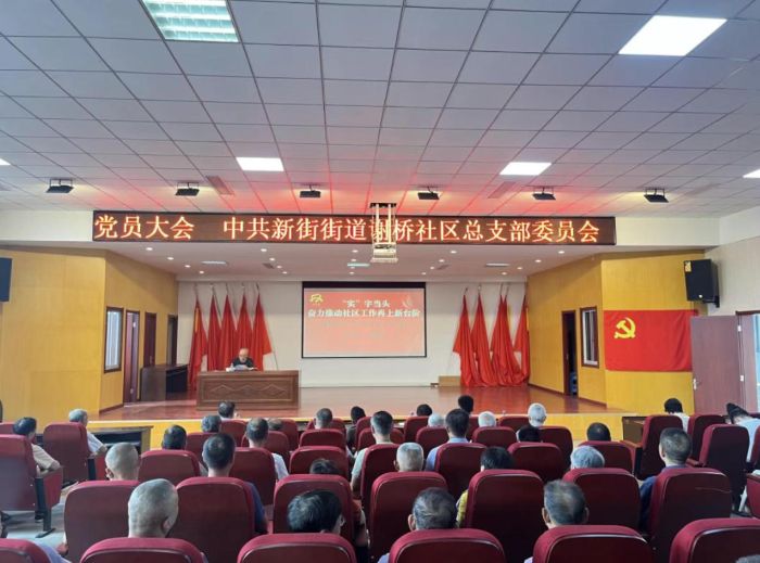 为庆祝建党104周年,值“七一”来临之际,新街街道谢桥社区党总支部在社区党群服务中心召开党员大会。