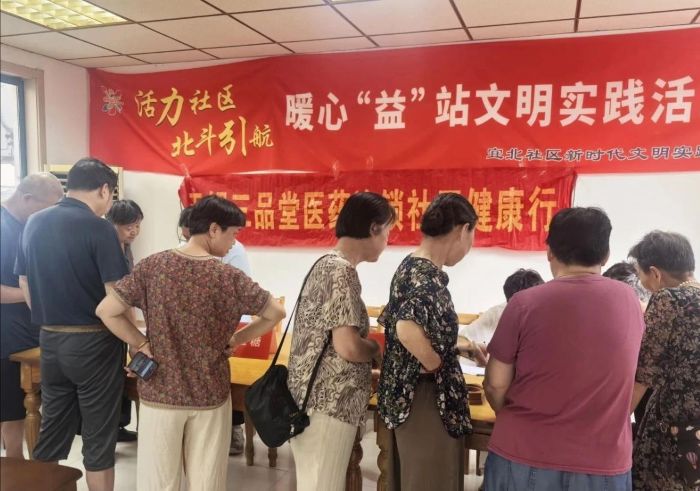 活动现场,来自三品堂医药的志愿者耐心地为居民们测量血压、血糖等,热心询问年纪大的老人常用药的使用情况和近期身体健康状况,并嘱咐他们日常生活中要经常关注自己的身体健康,不要因为身体状况随意乱用药有需要可以电话咨询他们,平时注意少盐清淡饮食,适量运动。在理发服务摊位,年长的居民有序的坐在椅子上聊着天排着队,现场条件虽然简单,但在志愿者的精心修剪下,拿起“爱心剪”,一边和居民唠家常,一边凭借娴熟的手法把老人们的头发修剪得干净利落,许多老人纷纷表示理发的志愿者不仅技术好,人也热心经常和他们聊天聊得很开心就像自己的孩子一样。