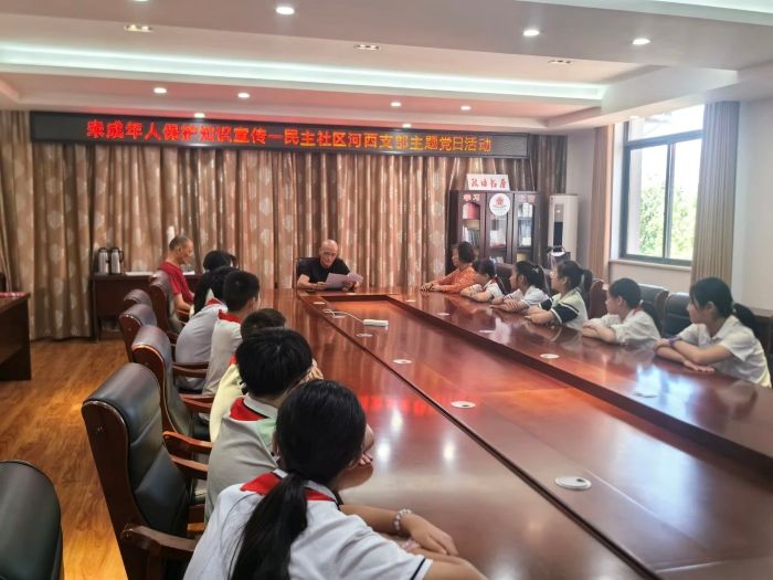 为切实加强校园普法教育工作和未成年人思想道德建设,提高未成年人学法、守法、用法、护法和自我保护意识,保障学生的身心健康,近日,民主社区河西党支部积极和徐舍镇司法所、徐舍镇交警中队、徐舍中小学对接,利用暑假假期,对中小学生开展普法教育活动。为进一步增强青少年安全意识,提高抵御和防范网络安全风险的能力,民主社区特邀法律顾问杨律师开展“与法同行,保‘未'成长”未成年保护知识讲座,结合《网络安全法》,提醒青少年提高个人信息安全保护意识,不随意在网上泄露个人信息,不点击无关网站或链接,增强信息辨别能力,守护网络晴空,共筑保护防线。