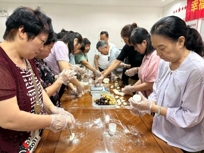 活动现场,来自九福楼大酒店的面点老师向居民细致讲解了冰皮月饼的制作技巧。在老师的指导下,居民们兴致盎然地揉制冰皮、包裹馅料、压模成型。当印有中秋图案的冰皮月饼从手中诞生时,喜悦与成就感洋溢在每个人脸上。社区也借此次活动向居民朋友们送上美好的节日祝愿,希望大家的生活像这香甜的月饼一样圆圆满满、幸福安康!