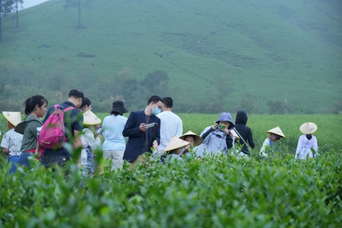 孩子们挎上小竹篓,在茶场工作人员的指导下化身"小茶农"。指尖轻捻茶树尖的嫩芽,家长手把手教孩子辨别"一芽一叶",漫山遍野跃动着亲子协作的温馨画面。