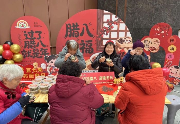 除了送福送春联外,活动现场还准备了热腾腾的腊八粥。社区工作人员将一碗碗软糯香甜、热气腾腾的腊八粥送到居民和外卖员手中,让他们在品尝传统美食的同时,也感受到了社区的贴心与周到。这碗腊八粥不仅传承了中华民族的传统年味,更拉近了党群关系,让邻里情在热气腾腾中愈发浓厚。