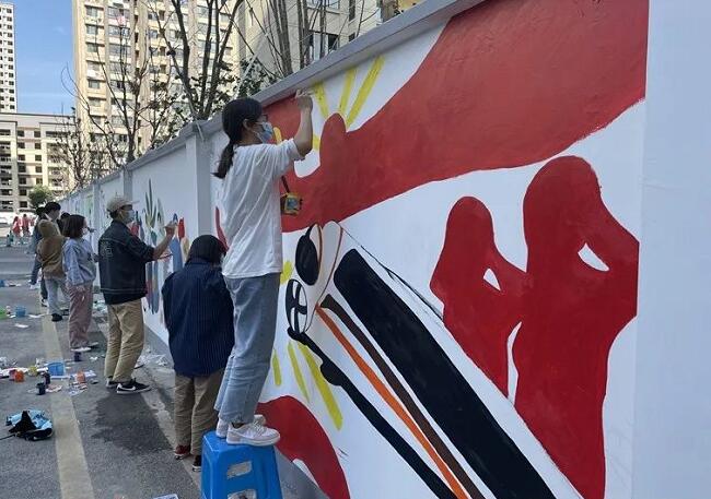 新墙新文化,新墙新风景。庄严肃穆的天安门、载梦前行的红船、生动活泼的卡通人物等形象经过近9个小时的努力,一幅幅富有深刻意义的墙绘在青年志愿者们的巧手下,将党史学习教育、文明城市、家风家训、生态环保、垃圾分类、志愿服务等多个主题栩栩如生的展现出来。