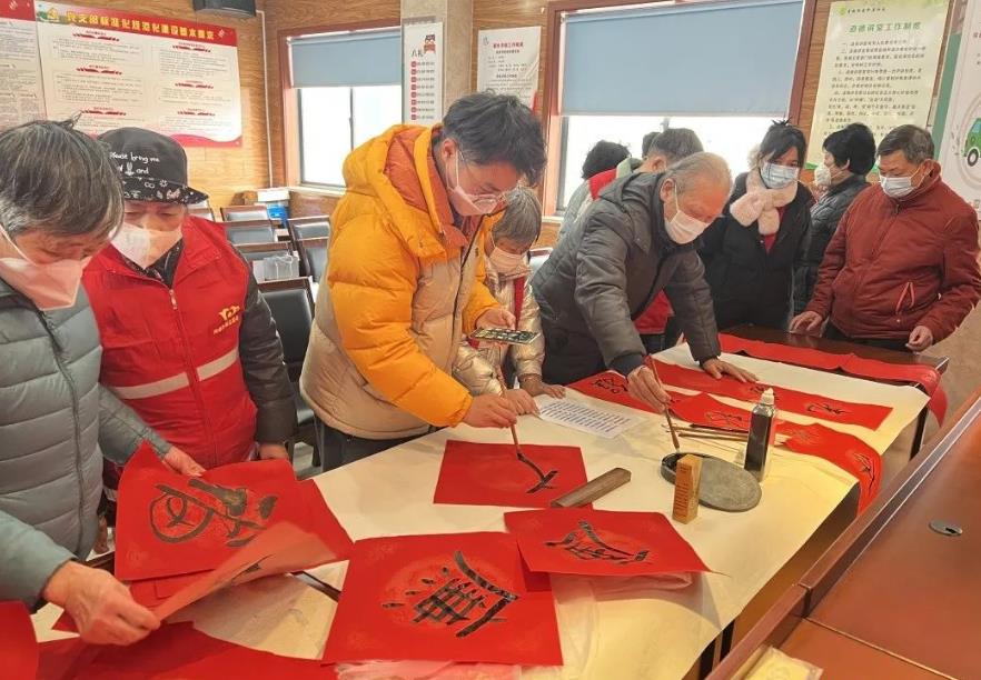 活动中,书法爱好者们挥毫泼墨,用各种字体写下苍劲有力、形式多样、内容喜庆的春联、“福”字、“廉”字,一笔一墨彰显书法魅力,一纸一砚谱写美好愿景。张张红纸翰墨映与居民群众的笑颜相得益彰。社区网格员还将这些春联和福字送到了困难党员、独居老人、统战对象家中。