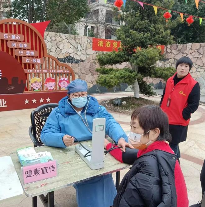 社区家庭医生在小区内开展健康义诊,为老人们测量血压,耐心询问身体状况,详细指导长期服药的慢性病老人规范用药,讲解高血压、糖尿病等慢性病的主要症状和防治措施。同时,社区工作者们也为居民们发放健康宣传资料。