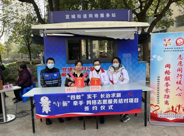 为践行“四敢”精神,砥砺实干争先,努力策应宜城街道盘活利用闲置核酸小屋、创新改造“网格服务站”的要求,助推“精网微格”服务提质增效,3月2日上午,宜城街道长新社区在瑞德康城“网格服务站”开展“小新”牵手——网格志愿服务结对项目签约活动。