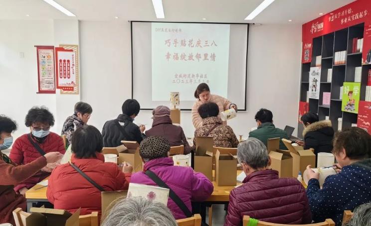 新华社区开展“巧手贴花庆三八 幸福绽放邻里情”妇女节主题活动