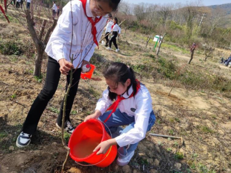 早春三月,气温慢慢回升,趁此春意盎然之时,3月10日,湖㳇社区携宜兴市湖㳇实验学校组织学生开展了红领巾“小五年规划”植树活动。