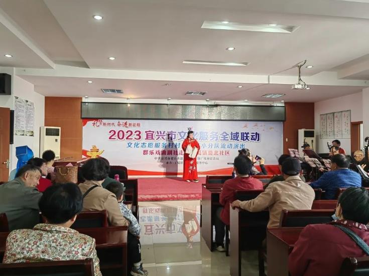 为丰富蜀北社区居民的精神文化生活,4月11日下午两点2023年宜兴市志愿文化服务村村行活动在蜀北社区居委会二楼会议室进行文艺演出,开展丰富多彩的文化演出,以“礼赞新时代 奋进新征程”点亮社区居民的业余生活。