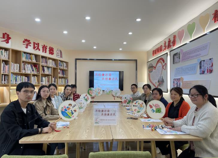 活动开始,先观看廉洁主题宣传教育片,以生动事例警示教育社区两委班子全体成员更加认清自身的责任与担当,在自己的本职工作中不忘初心、砥砺前行。同时,通过警示教育宣传片来加深大家对廉洁文化的深刻理解,进一步激发大家的廉洁意识,从而引入本次活动主题。绘一把“廉扇”,享一处清风,观一段视频,传一种廉洁。活动现场,大家纷纷拿起工作人员提前准备好的空白团扇、水彩颜料及各种绘画工具开始构思与“创作”,将自己对廉洁的领悟一笔一画绘制在扇子上。他们有画莲花的,“出淤泥而不染,濯清涟而不妖”;有画兰花的,“世人皆浊我独清”的高尚品格;也有画竹子的,“象征着挺拔高洁,刚正不阿”。经过一个多小时的努力,色彩缤纷的廉洁扇精彩亮相,扇子虽小,寓意深远,团扇摇曳扇出的不仅是凉爽的微风,更是清廉之风。