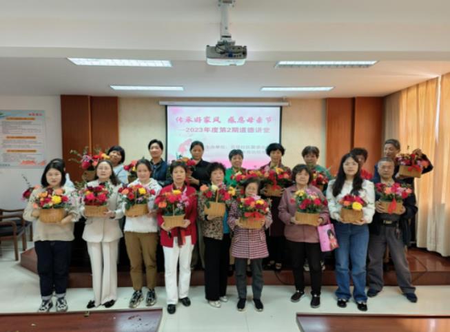 岳堤社区开展“传承好家风 感恩母亲节”第二季度道德讲堂暨插花活动