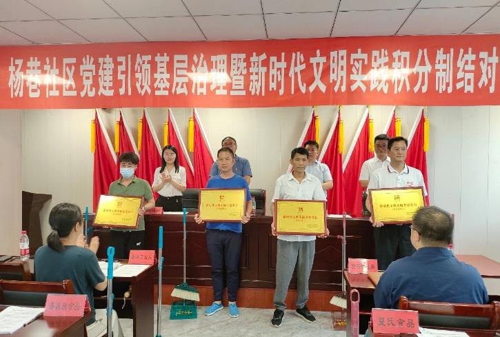 6月30日上午,杨巷社区联合杨巷卫生院、供电所、电信、有线等15家单位,开展了党建引领环球体育暨新时代文明实践积分制结对共建活动。主要是社区围绕学习宣传、环境卫生、文明善行、遵纪守法等方面对居民进行积分考核,共建单位则提供相应服务或物品,用于居民积分兑换,从而广泛动员和激励驻镇单位、在职党员、居民群众,积极参与到共建、共治、共享的环球体育格局中来,为实现社区自治打下坚实基础。
