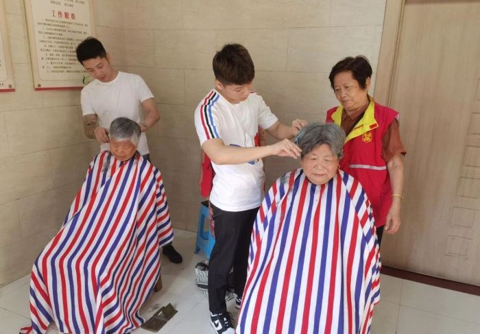 理发志愿者耐心、细致地询问居民的需求,为他们剪出最心仪的发型,娴熟的手法得到了大家的夸赞;医护志愿者为居民们测血压、血糖,提供健康咨询解答,提醒居民注意合理饮食;推拿志愿者们根据居民的身体情况及不同需求分别给大家进行了颈、肩、腰、腿等部位的穴位推拿,解决了老人们长期以来的腰酸背痛问题;普法志愿者开展法律咨询活动,现场为居民进行法律知识答疑解惑。