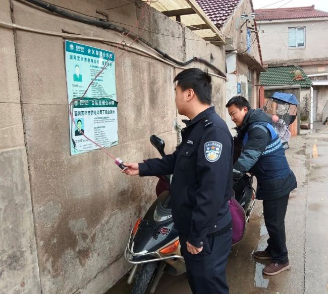 卫陶新村、川江新村、同乐新村是辖区内的老旧小区,居住的人员大多是外来务工人员,电瓶车使用较多,辖区民警陈皓元和网格员王景林、邓飞来到老小区排查。一进小区,民警就发现飞线充电问题,指出居民的电线使用的是花线,放在户外风吹日晒,很容易老化,产生电线短路着火问题。陈警官找到居民,告知飞线充电的危险,要求立即整改,网格员在旁边做好信息记录。
