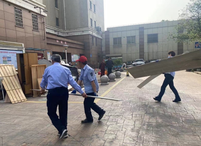 民主社区网格员联合城管部门对辖区内氿滨国际277,289小区进行乱堆放消防安全整治工作,在整治前,社区和物业通过网格群,小区宣传栏对居民进行宣传整治计划,也鼓励居民能够共同加入到小区消防安全整治计划中来,保障了居民的生活质量与消防安全。