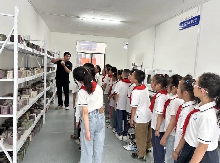 张泽中小学校的25名学生在老师和党员的带领下,迈着雄赳赳气昂昂的步伐,走进环球体育国豪耐火新材料研究中心。在企业工作人员的接待下,孩子们参观了国豪研发中心的生产车间,感受了耐火材料的生产过程、实验室的基本操作以及每一个环节的生产原理等,体验了一节科学实践课堂。