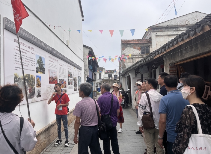 被红色气息浸润的竺西医院旧址,是由中国社会主义青年团无锡支部首任书记、宜兴籍首位中国共产党党员张效良开设,一度成为当时共产党地下联络点。老屋墙上“竺西医院旧址”的牌匾下,如今挂上了“竺西红色文化纪念馆”、“党员教育实境课堂示范点”等标牌。每间屋子陈列着充满年代感的老物件儿:算盘、瓷罐、药臼、听诊器、中药柜……林林总总不下数十种,党员们驻足观看着这些饱经风霜的老物件,一起感受当时的医疗环境。医院旧址所在的这条历史文化古街区——周铁老街,作为宜兴一处红色地名,是一片孕育红色文化的热土,有着一段段难忘的革命故事。这里除了走出优秀的共产党员张效良,还走出了宜兴籍中国工程院院士程天民等名人。