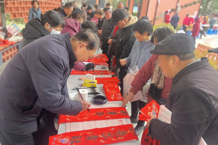 无联不成春,有联春更浓。春联以其独特的韵味和寓意,承载着人们对新一年的热切期盼与深深祝福,成为了一种不可替代的文化符号。活动现场,居民们络绎不绝。书法爱好者们齐聚一堂,以满腔热情投入到这场文化盛宴中。他们铺开鲜艳的红色宣纸,饱含墨汁的毛笔在纸面上游走自如,笔尖舞动间,字体的艺术与文化便跃然纸上。随着对联的逐渐呈现,居民们的眼中闪烁着期待与喜悦的光芒。