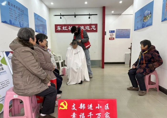 与此同时,活动现场还开展了“支部进小区 幸福千万家”主题活动,联合十里牌医院口腔科、老百姓三品堂大药房、新平盲人推拿所、印秀沙龙、欢乐众爱行公益社等共建单位和辖区商户为居民群众提供了一系列便民志愿活动:健康义诊、推拿按摩、爱心理发、口腔检查、义务磨刀等,得到了居民们的一致好评。居民俞阿姨说:“快过年了,社区举办这样的便民服务真是太贴心了!这爱心理发服务真不错,让我漂漂亮亮过大年。”