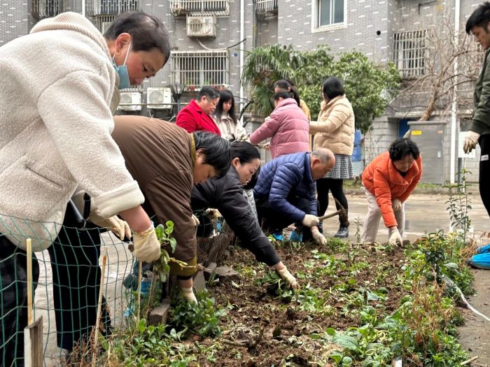 活动现场,众人热情高涨,积极投身于种植月季苗的环节。大家分工协作,分配花苗、挥锹铲土、扶苗填坑、提水浇灌,每一道工序都认真细致,井然有序。现场气氛热火朝天,欢声笑语回荡在小区的每一个角落。“孟春之月,盛德在木。”在这充满希望的时节,这一花苗种植活动承载着社区居民对美好生活环境的向往。待月季苗茁壮成长、竞相绽放之时,将成为小区里一道亮丽的风景线,为社区增添蓬勃生机。活动间隙,部分志愿者还向大家科普月季的养护知识,从浇水的频率到施肥的要点,从病虫害的防治到修剪的技巧,耐心细致地讲解,让居民们不仅参与种植,更能在日后悉心呵护这些新生命。在小区的其他角落,志愿者们也抓紧时间进行了环境卫生的快速清扫,将路面的落叶、杂物清理干净,为新种植的月季营造整洁的周边环境。