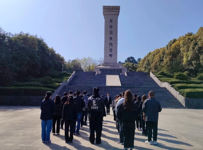 上午9时,在庄严肃穆的祭扫仪式上,全体人员奏唱国歌,依次走到烈士纪念碑前,将一朵朵小白花敬献在纪念碑前并默哀三分钟,向革命烈士表达沉痛的哀悼与深切的缅怀。随后,一行人前往宜兴党史陈列馆,全体党员面向党旗庄严宣誓,重温入党誓词:“我志愿加入中国共产党......”铿锵誓言回荡在党史陈列馆上空,红色血脉激荡在每个人的胸膛。