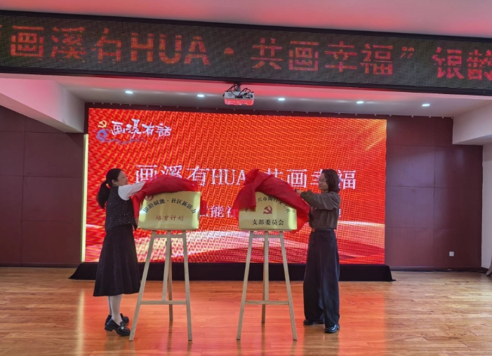 为充分激发低龄老人的潜能,彰显自身价值,画溪社区联合陶行义工社,发布“画溪有HUA·共画幸福”银龄赋能项目,社区合伙人范娟做项目介绍,丁蜀镇党建办公室主任洪旭琴为陶行义工社功能型党支部揭牌,丁蜀成人文化技术学校副校长周英为项目揭牌。