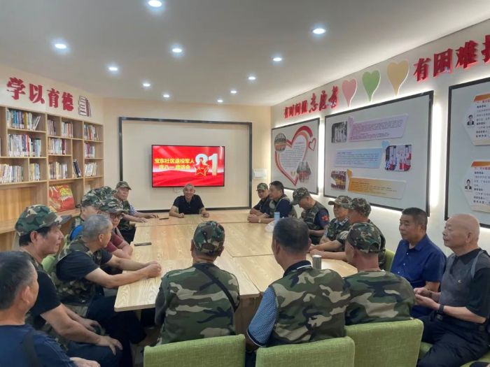 八一建军节来临前夕,为表达诚挚节日祝福、造浓社区拥军优属氛围,丰富辖区内退役军人和军属们的精神文化生活,7月31日下午,宝东社区组织“老兵益起来”志愿服务队退役军人及军人家属、社区工作人员开展了丰富多彩的“庆八一”活动。